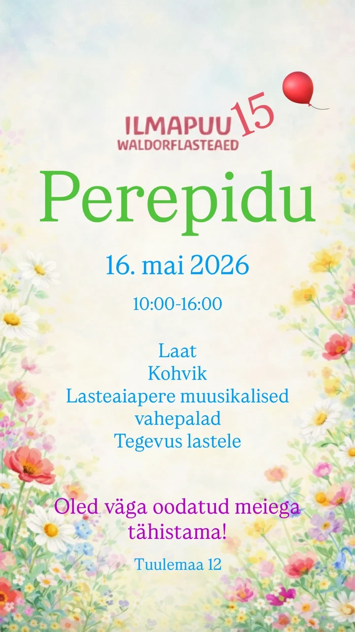 Ilmapuu Waldorflasteaed sai juba 15-aastaseks, see tähendab pidu ja siin kutsumegi kõiki meile külla